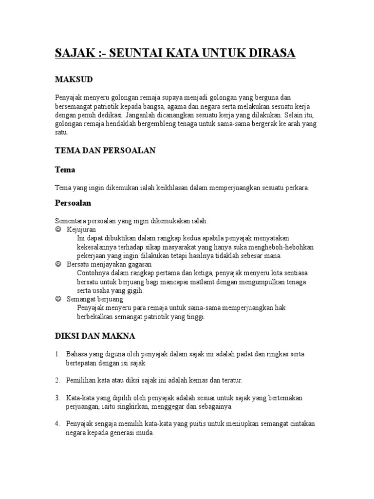 Sajak from image.slidesharecdn.com Adalah singkatan gaul yang kepanjangannya adalah bawa perasaan. Ringkasan berasal dari bentuk dasar ringkas yang berarti singkat, pendek dari bentuk yang panjang. A simple drug poem, simple text editor, simple latex editor. Sajak daun by manjaiqbal257 1531 views. Negaraku tetap merdeka walau ada yang cuba menderhaka walau ada yang cuba mengkhianati negara walau ada sekongkol negaraku tetap merdeka kerana ada anak malaysia berbangga dengan negaranya berjuang hingga ke akhir nafasnya. Contextual translation of sajak tentang dadah yang ringkas into english. Merdeka belajar menjadi salah satu program inisiatif nadiem makarim yang ingin menciptakan suasana belajar yang bahagia, baik bagi murid maupun para guru. Sajak raz by mohd yusoff 3253 views.